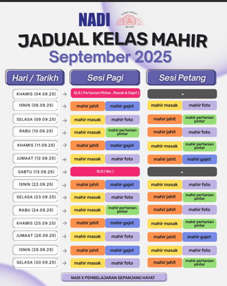Jadual Kelas Mahir Untuk Bulan September 2025